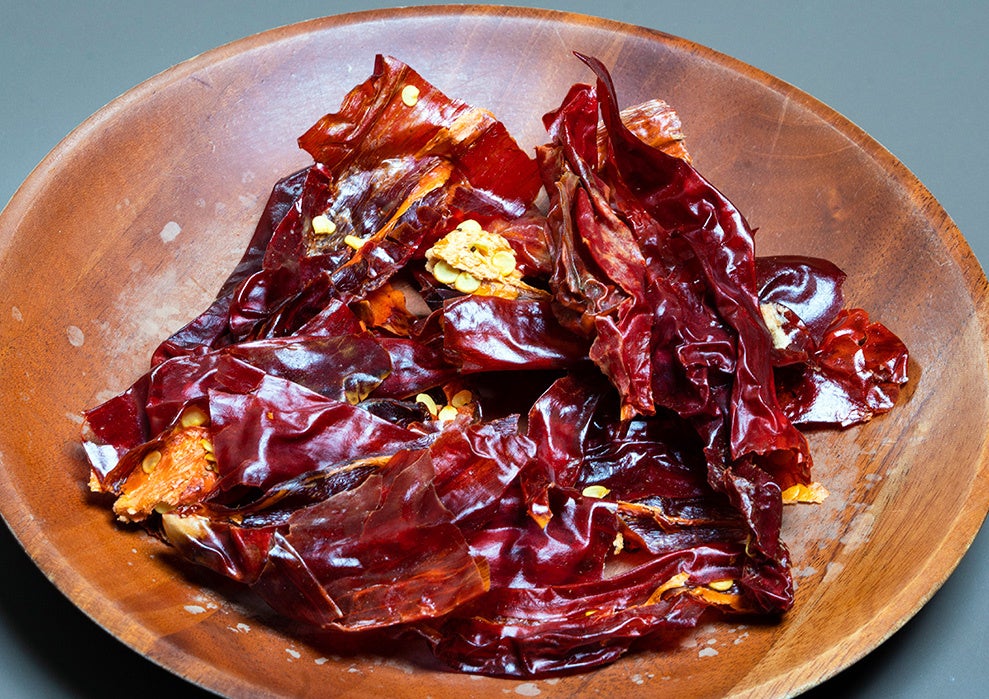 エヅェはトウガラシ、塩、油が基本の素材で、この3つはどの家庭でも使われているそうです。ガテモタブンでは、これらに玉ねぎと山椒を加えています。ブータン産の乾燥トウガラシはダシのような旨みがたっぷりです。