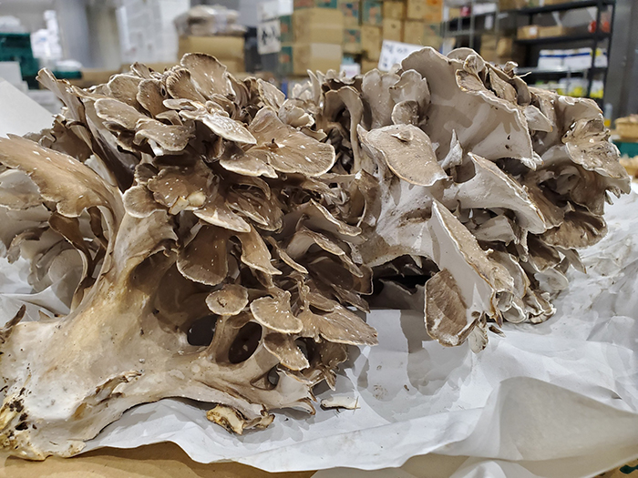 今朝の豊洲市場・政義青果、山形県より原木栽培舞茸が入荷しました🎵 肉厚で天然物のような風味、期間限定です❗️😄#政義青果 #豊洲市場 #原木栽培舞茸 #原木舞茸 #舞茸 #まいたけ
