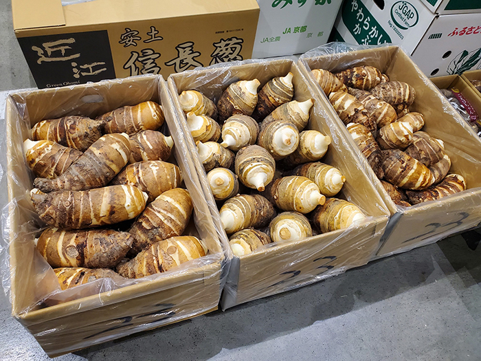 今朝の豊洲市場・政義青果、京都より海老芋が入荷しました🎵 京都 滋賀野菜揃ってます。松茸も少しずつ増えてまいりました😄#政義青果 #豊洲市場 #京野菜 #近江野菜 #海老芋