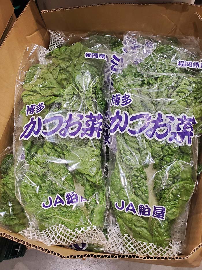 今朝の豊洲市場・政義青果、福岡県よりかつお菜が入荷しました🎵 かつお出汁のような旨味が出るので福岡の雑煮には欠かせないそうです😄#政義青果 #豊洲市場 #かつお菜 #勝男菜 #JA粕屋