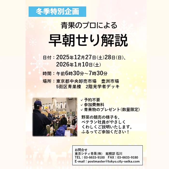 今朝の豊洲市場・政義青果、日曜日ですが営業中です🎵 年末のお買い物はいかがでしょうか❓️#政義青果 #豊洲市場