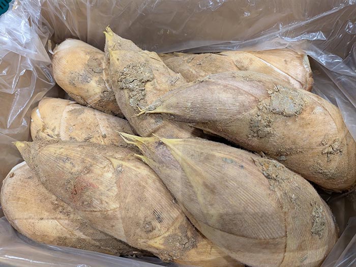 今朝の豊洲市場・政義青果、京都よりたけのこが入荷しました♫ 1ランク上の物集女産たけのこ、パンダマークでお馴染みです🐼#政義青果 #豊洲市場 #たけのこ #京たけのこ #物集女たけのこ