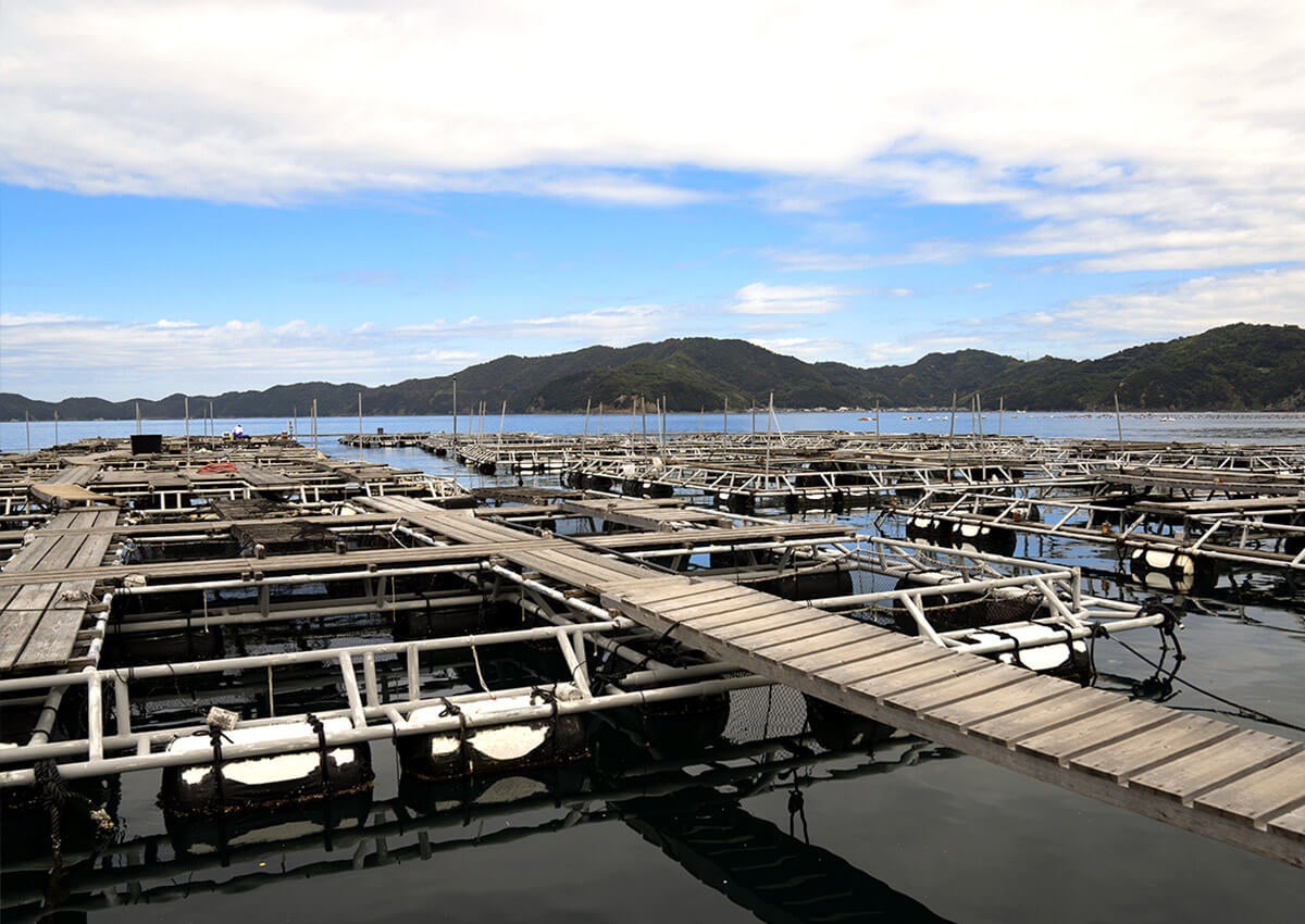 愛媛県の養殖生産は宇和海のリアス海岸からなる急深な海域で盛んに行われている