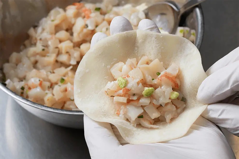 - 〈開化亭〉古田貴達シェフのホタテ貝柱とウニの揚げ餃子