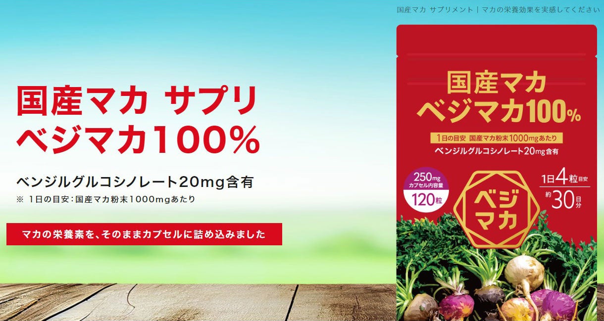 国産マカ「ベジマカ」の栽培体制が整い、安定した収穫量が見込めるようになったことから、ベジマカサプリの価格を大きく下げて提供できるようになりました。詳しくはwebへ https://www.umai-mon.com/user/collection/1078