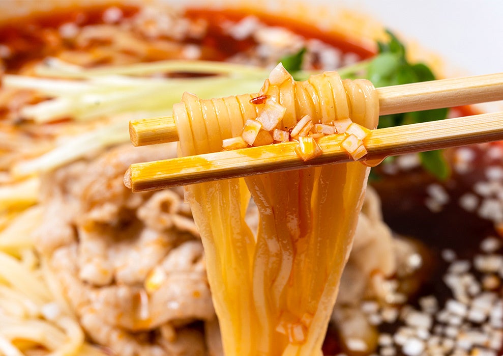 冷やしサンラー麺は、口当たり柔らかな酸味、うまみのある辣油の辛味、爽やかな白コショウの辛味が特徴で、酸っぱいだけ・辛いだけではない絶妙なバランスに仕上がっています。試食した男性陣が揃って「美味しい!むせないで食べられる!」とスープまで平らげたほどです。