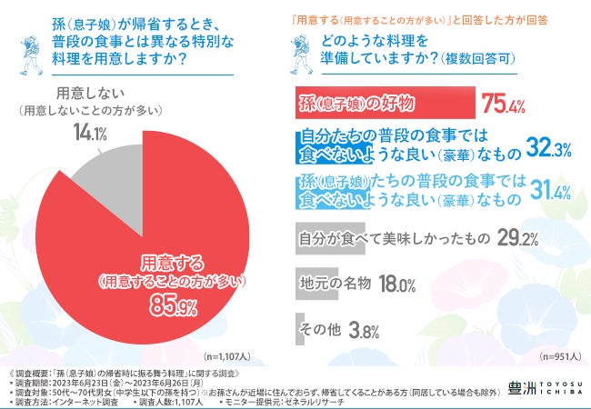 今回の調査で、孫(息子娘)が帰省する際に、いつもとは違う豪華な料理を用意する方が非常に多いことがわかりました。