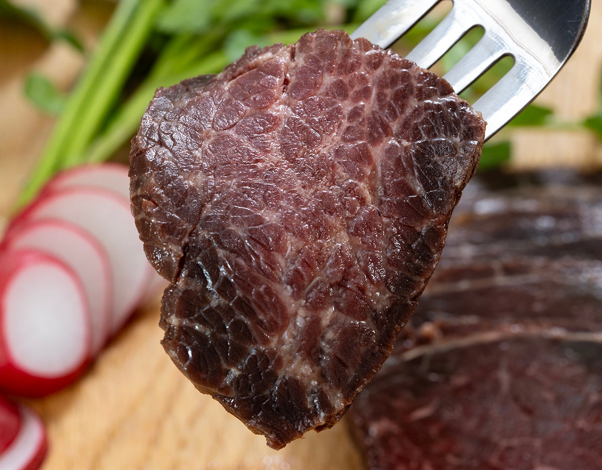 熟成した鯨肉はステーキなどにすると弾力があり、鮮魚というよりも精肉に近い仕上がりになります。