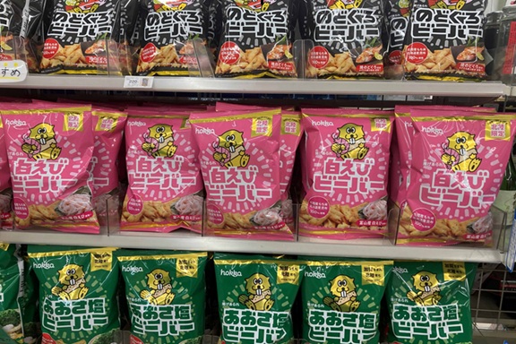おみやげの世界にも白エビは広がっています。数社が出している白エビ煎餅は軽やかな香りが人気で、富山駅でも定番の一品。隣の石川県でも、あの“ビーバー”シリーズの白エビ味が、地元でファンが多いおやつになっています。