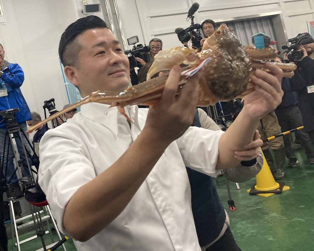 1匹450万円の蟹をお買い上げしたのは、翌11月7日にグランドオープンする、金沢市内の料理旅館「つる幸」。ご主人の竹本啓亮さんは、セリが始まる前から蟹の品定めをしていましたし、気合いが入っているのは、傍から見てもよくわかりました。落札のあと、メディアに囲まれた竹本さんは、こう言っています。「なんとしてでも落としたいという気持ちで臨みました。鮮度もよく、滅多にないほど立派なカニなので、ぜひお刺身でお客様に楽しんでいただきたいと思っています。今回の初セリが少しでも明るい話題となり、被災された方々の希望や能登の復興につながればうれしいです。加能ガニを通して、全国の皆さんに石川県の魅力を知ってもらい、ぜひ訪れていただきたいと願っています」