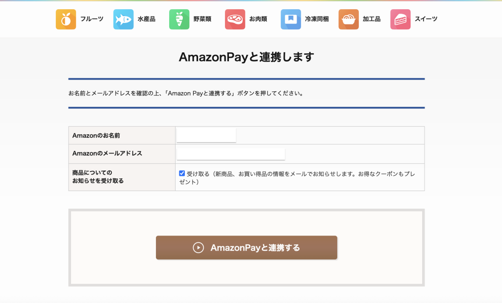 すでにAmazonに登録している住所やクレジットカード情報をそのまま利用できるため、豊洲市場ドットコムで配送情報や支払い情報を一から入力する手間が省けます。