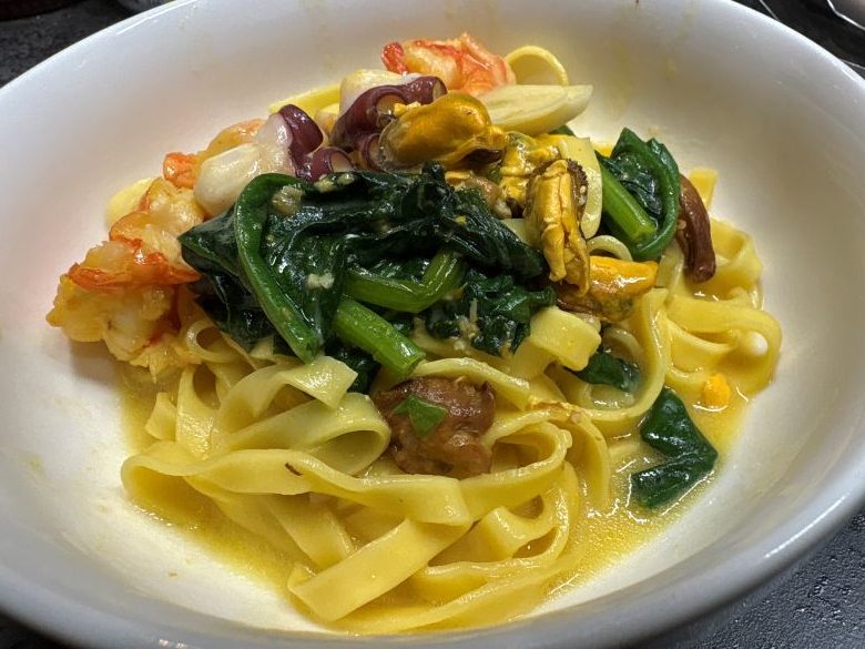 日髙良実シェフの『ムール貝とジロール茸のサフランクリームのパスタ』2人前です。