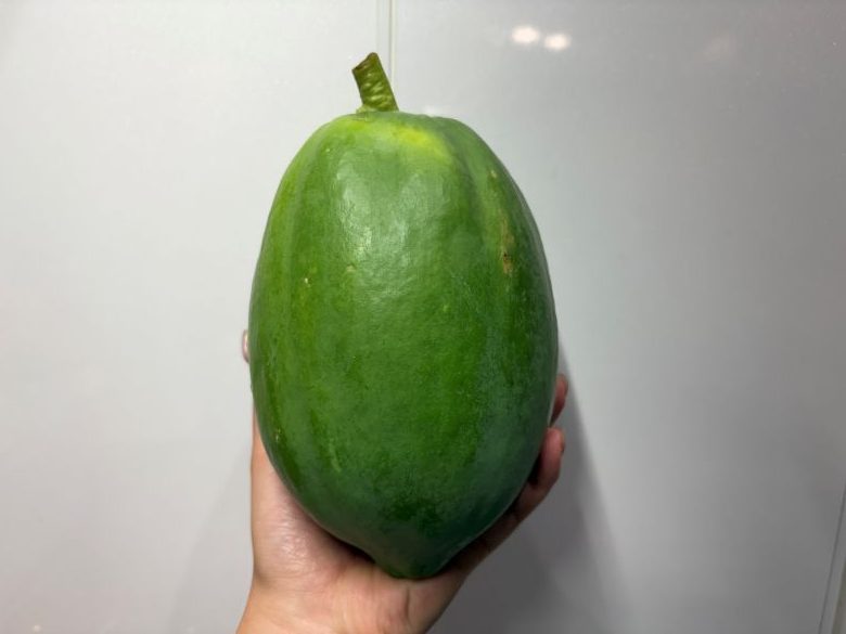 つなぎ百貨堂でも売っている青パパイヤです。もう~~~このおいしさに魅了されてしまって、めっちゃ大きい青パパイヤを4個も背負って帰ってきてしまいました。