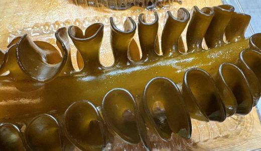 冬の終わり位になると、スーパーにぐるんぐるんの物体が並ぶようになります。生のめかぶです。めかぶとは、わかめの根元に近い部分です。ぐるんぐるんのめかぶが多いですが、個人的には食感がある方がすきなので、茎多めを選びます。
