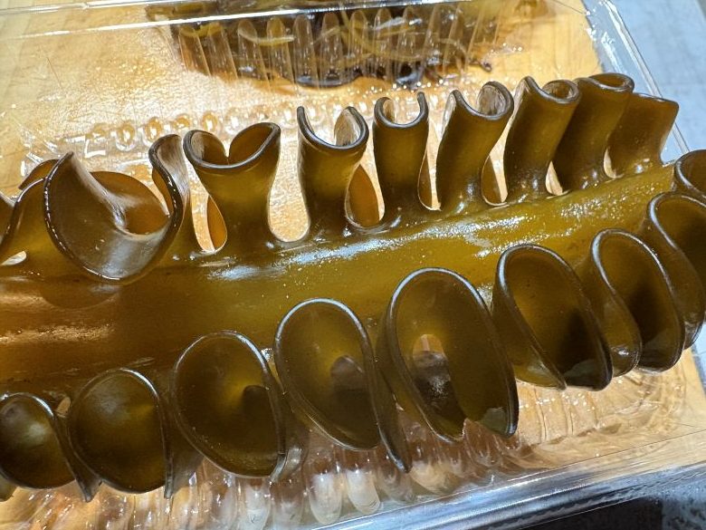 ぐるんぐるん生めかぶとはちょっとビジュアルが異なる、茎多めの生めかぶ。本来のビジュアルよりも茎多めの個体です。