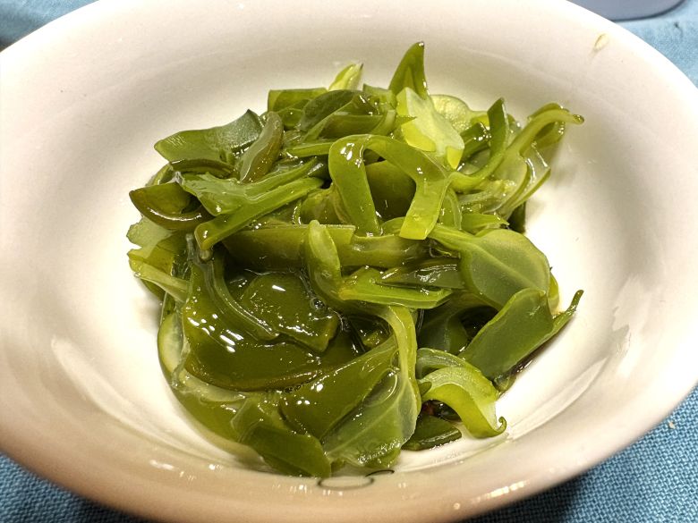 ぜひ、生のめかぶを、あまり細かく叩かずにカットしてポン酢で食べてみてほしいです。湯をサッと通すだけなのでお手軽食材です。