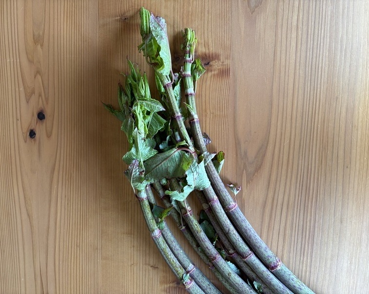 高知の郷土料理、イタドリの油いためをアレンジしました。