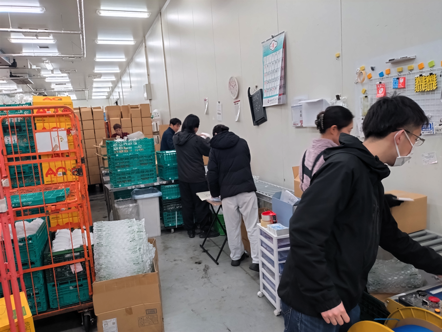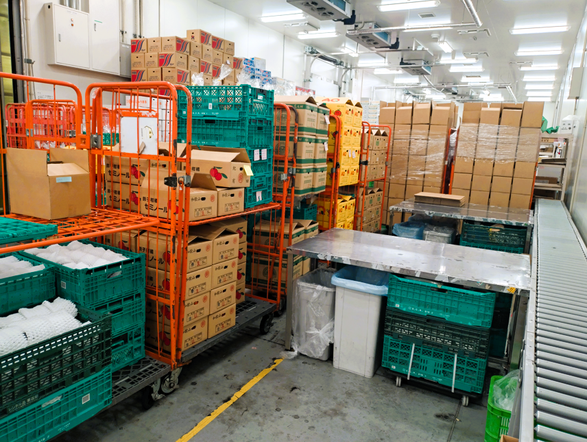 出荷当日は複数のスタッフが連携してレーン作業を行い、スピードと正確性を両立。