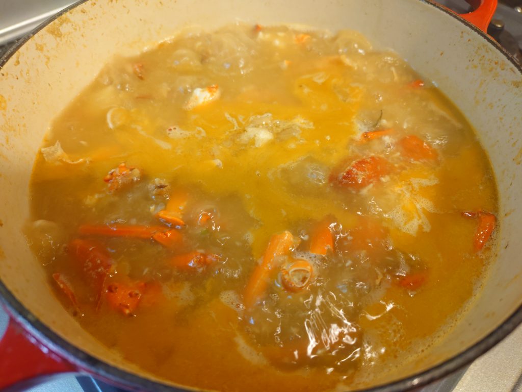 今回は、800gアップの千葉県串浜産の冷凍伊勢海老をチームで試食した際に残った“殻”を使って、伊勢海老のビスクを作ってみました。