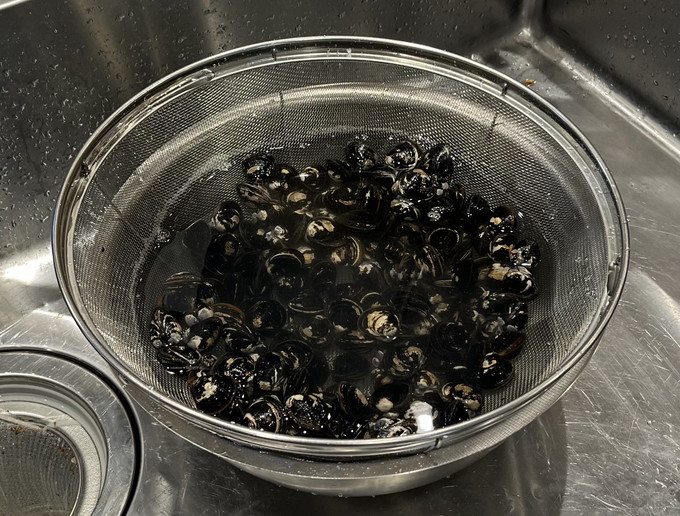 そしてしじみ。普段は砂抜き済を買っていつので砂抜きを試してみみました。塩水に入れて、一晩おいたら・・・