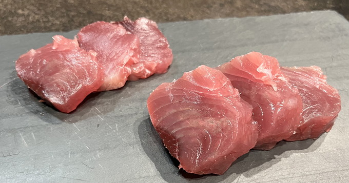 職場の皆様と試食したあとは持ち帰り夕飯に。1.5cmくらいの厚さとその半分の厚さでどうぞお試しください、と出したところ、子供たちは薄い方がいいとのこと、大人は断然分厚くて食べ応えがあるのがいい。臭み全くなく、味もしっかりしていて美味しい。ちょっとだけ筋が気になる場所があったのは時期の問題か!?