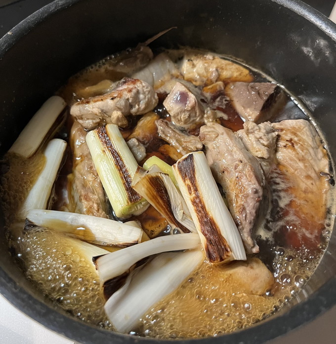 骨の部分の尾の硬い部分、血合いはたっぷりのしょうがで煮てお酒に合う美味しいやつ。冷蔵庫で1日寝かせて翌日の夕飯へ。