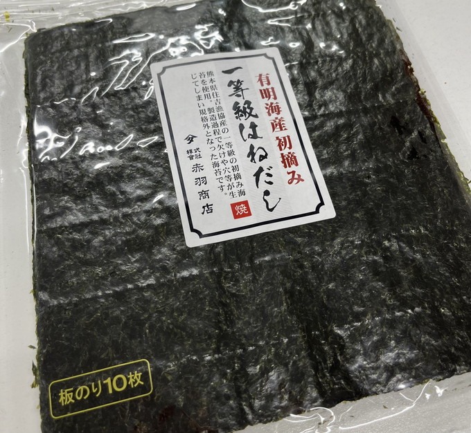 海苔は姉妹店で販売している赤羽商店のもの。大好きな海苔で切らさず常備しています。