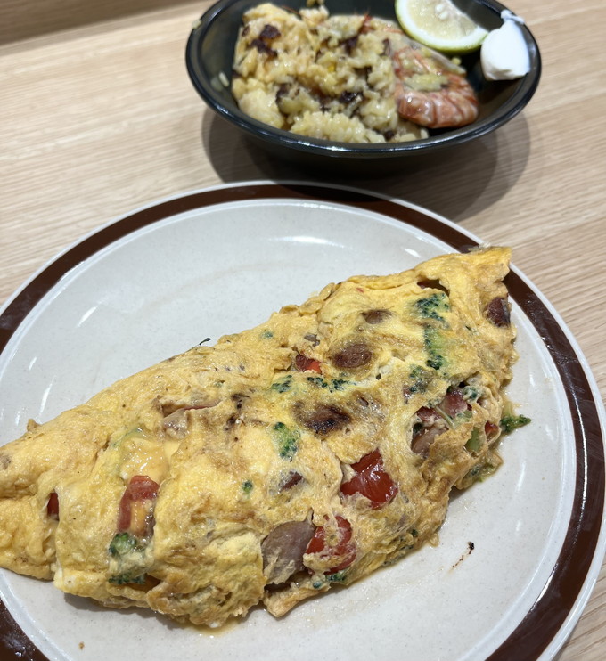 ということで具沢山オムレツに。ブロッコリートマト、ウインナーを入れました。主食は先日作ったパエリア。お、おなかがいっぱい・・・。