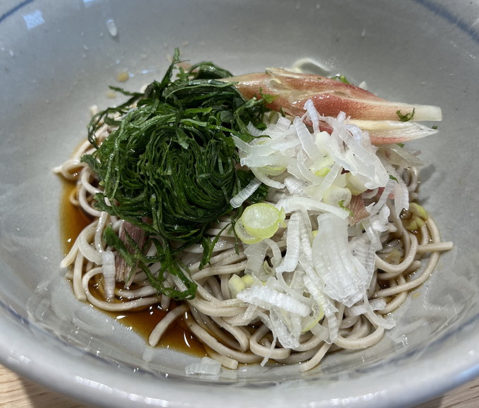 最初は薬味たっぷり、後半は納豆と長芋を入れてねばねば蕎麦で美味しくいただきました!
