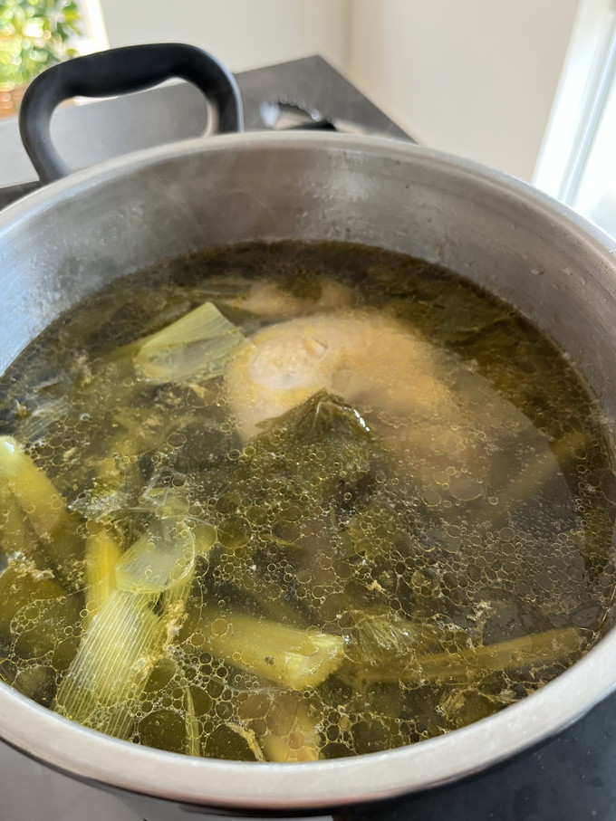 あまり長く煮込みすぎると鶏臭さが出てしまうとのことなので4時間くらい弱火で煮込みました。
