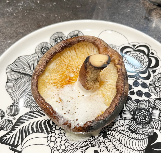 残った分を買い取りました。とりあえず、焼いて食べるのがいいと思い、魚焼きグリルで焼いて、バター醤油で。ああ、しいたけ史上最もおいしくなさそうな写真になってしまいました。。。バター醤油で間違うわけがない、と思いましたが、美味しいけど肉厚すぎてしいたけの主張が強すぎてしまいました。