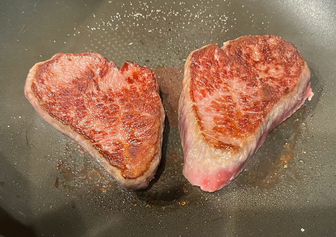 ステーキで頼むとこんな感じです。用途に応じてカットも変えられます。