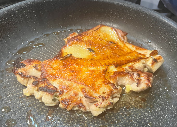 ももはフライパンで焼き、