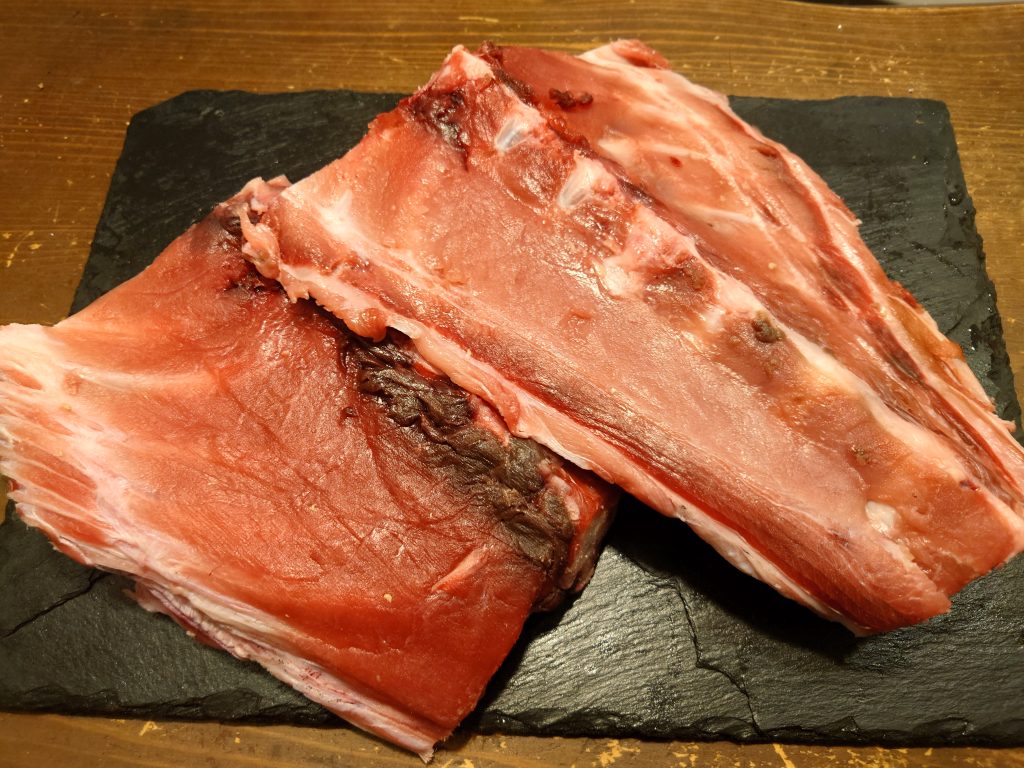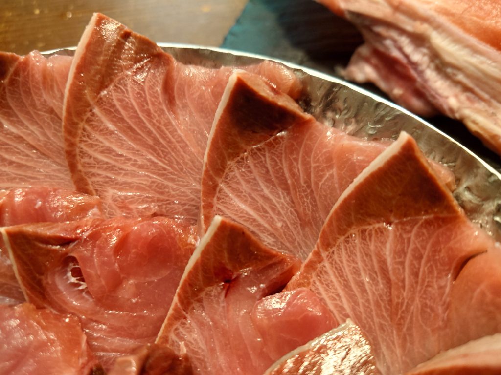 ある日奥さんに当店のサイトを見せてると、生本まぐろ 中落ち付き中骨を発見。マグロマートみたいに中落ちそぎ落としを家でやりたいとの事で早速ポチリ。ついでに生本まぐろ カマと、天然ぶりをポチリ。商品を持って帰る日に仲卸から鰹半身を中や半分おっつけられ(買わされる)、魚だらけに…