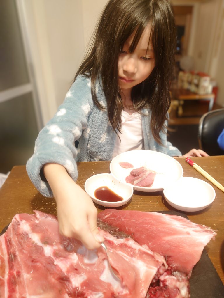 初日は色が変わりやすい中落ちとぶりで刺身!ハマグリも買って殻でそぎ落としたかったけど、今回は断念。でも子供達は楽しそうにスプーンでほじくってました。